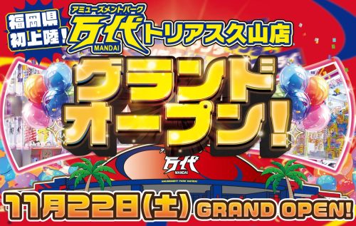 万代が福岡初上陸!アミューズメントパーク万代 トリアス久山店が11月22日(土)10時グランドオープン!